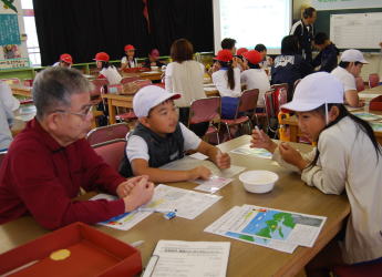 | お礼のあいさつをされる後藤寺小学校の教頭先生。 |