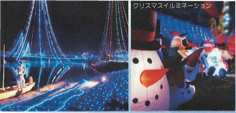 イルミネーションが点灯すると、年々飾りも広がって、まるで彦山川に星が降ってきたように見え、訪れた人々の心を和ませてくれます。 |