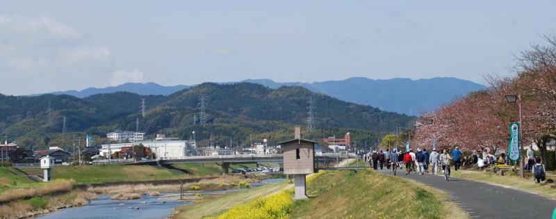 桜が七分咲の犬鳴川河川公園で3月29日(日)、桜まつりでにたくさんの人でぎわいました。