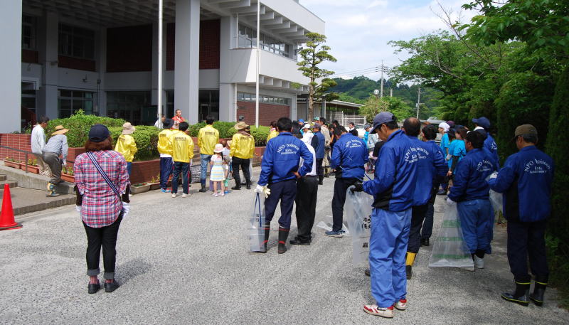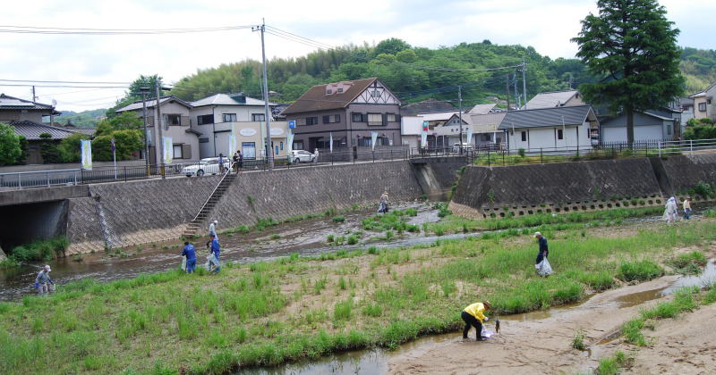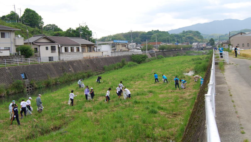 | 5月15日(日)、嘉麻市立山田中学校に、山田川をきれいにしようとたくさんの皆さんが集まってきました。山田川クリーン作戦は今回で24回目を迎えます。 福岡県飯塚県土整備事務所の管轄である嘉麻市山田地区を流れる山田川(遠賀川支流)を、もっときれいにと、地元の皆さんが集い山田川クリーン作戦を春秋に実施しています。 特に山田中学校下を流れる山田川も、地域の住民や企業の皆さん、そして中学生の皆さんが集まって清掃活動を行いました。特に中心地で合流する山田川は家庭排水やゴミが集中するため地域の皆さんは大変困っていました。 今回の清掃では、悪臭を発生させていた所が県によって整備され、水がきれいに流れるようになっていました。「水が流れるようになって、ゴミがなくなり、きれいな川になりました。」静かに流れる川をじっと見つめて嬉しそうに話してくれました。 |