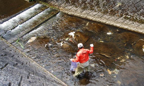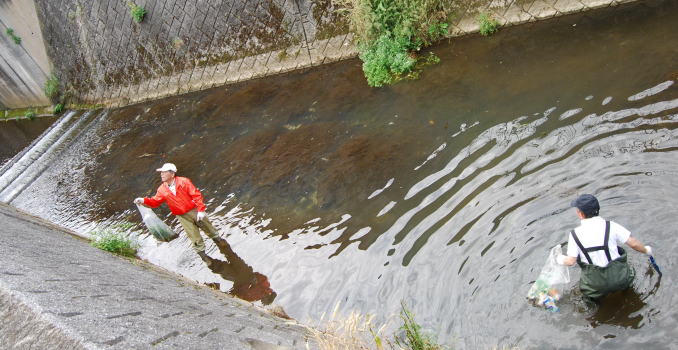 | 川の中に入ってゴミをとりました。 |
