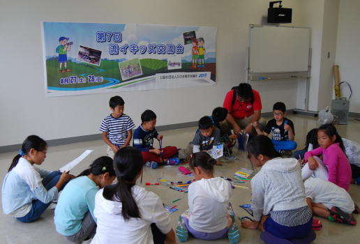 8月27〜28日 第7回流イキッズ交流会が公益社団法人ひびき青年会議所の主催で開催。遠賀川流域から集まった子ども達26人が参加し、遠賀川の事を体験しながら学びます。27日は開会式を飯塚市防災センターで行いました。初めて会った子ども達はそれぞれ自己紹介をしながら交流。その後、「遠賀川ってどんな川」を遠賀川流域住民の会の松岡さんからお話していただきました。 |
