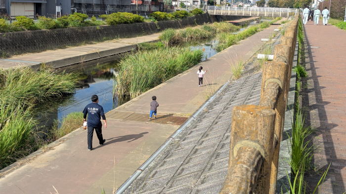 10月26日(土)、中間市の曲川にて「第38回清掃活動」が開催されました。(開会式 8時50分) 主催は「曲川を守る会」および「蓮花寺曲川を守る会」の皆さんです。 事前には主催者の皆さんによって河川敷の草刈りが行われ、当日は企業の皆様や親子連れの方々が参加され、刈り取られた草の回収やごみ拾いに汗を流しました。 作業中には、川を泳ぐコイの群れを見つけた子どもたちが目を輝かせ、「こんなにいるんだ!」と驚く場面もあり、びっくりしていました。 作業が終わる頃には河川敷がすっかりきれいになり、参加者の皆さんからは笑顔がこぼれ、達成感に包まれていました。 これからは、散歩や憩いの場として、より気持ちよく利用していただけそうです。 |