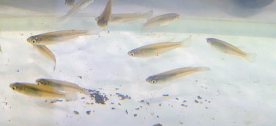 1月2日、飯塚市幸袋の幸袋文化交流センターで「幸袋まつり」が開催されました。 今回はたくさんのメダカが採取され、子どもたちは水槽をのぞき込みながら「かわいい!」と声をあげるなど、楽しそうに観察していました。 一方、先日の遠賀川環境学習会では、外来生物のカダヤシが確認されました。 見分けるポイントの一つは、尾びれの形です。 また、遠賀川でも多く見られるオイカワやカワムツなどは「ハヤ」とも呼ばれ、その幼魚はメダカと間違われやすいのですが、尾びれが「逆さ富士」のように下へ向かって広がる形をしているのが特徴です。 なお、カダヤシは移動が禁止されている外来生物であり、採取しても家に持ち帰ることはできません。遠賀川の自然を守るためにも、正しい理解が大切です。 |