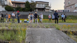 地元で活動する皆さんが夕方に集まり、水辺の清掃活動を行ったあと、午後7時7分7秒にあわせてみんなで乾杯。 短い時間ではありましたが、久しぶりに顔を合わせる方々も多く、談笑しながら心地よい時間を過ごすことができました。