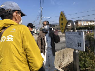 2026年1月16日10時から、響みどりの会で水巻町の歴史巡りを行いました。水巻歴史資料館では、大坪学芸員の方に展示物の説明をしていただいた後、八釼神社、八所神社、河守神社、頃末小学校を巡りました。 資料館で見学した弥生土器壺(遠賀川式土器)は、遠賀川の川底から水巻町職員によって発見されたものです。原形を保ったまま出土しており、稲作発祥の地といわれる水巻町と遠賀川との深い関わりがよく分かりました。 八釼神社では、大イチョウ「砧姫」と日本武尊にまつわる伝承を伺いました。あわせて、旧水巻町役場の門柱や、鯨油を使ってイナゴ駆除を行った蔵冨吉右衛門の墓を見学し、地域に尽くした人物の歴史を知ることができました。 八所神社では、5世紀の古墳とされる場所を見学しました。壁石と考えられる石や、全国的にも珍しい四環鈴が発掘されたという説明が印象的でした。 その後、江戸時代の堀川掘削時に残された切貫のノミ跡を見学し、当時の人々の苦労や技術に思いをはせました。 最後に、頃末小学校の床下にある約3,000万年前の地層を見学しました。ここは「ブラタモリ」でも紹介された場所で、当時は海だったため、貝などの生物の化石が見られます。長い年月を経て、これらが石炭になったことを学びました。 短い時間でしたが、水巻町の歴史をぎゅっと学ぶことができました。身近な場所に、想像以上に長い歴史があることを改めて感じました。 |