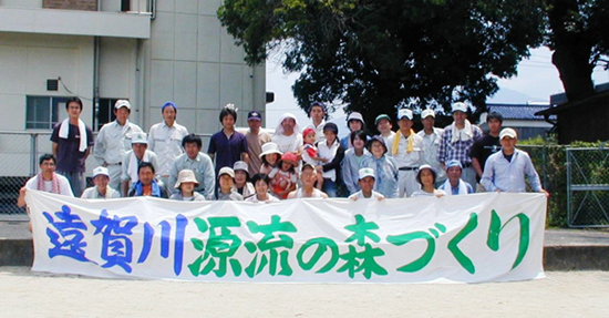 活動の目的 嘉穂町(現嘉麻市)が遠賀川の源流である事に着目し、後継者不足や木材価格の低迷による林業の衰退 活動の内容 遠賀川源流部を中心に、これまで人工(杉檜)だった山や、台風で被害を浮け、荒廃した山を保水力や河川浄化機能を高めるため、毎年3月に落葉樹(クヌギ、ヤマザクラ、カエデなど)を中心に植樹しています。8月には、植樹した場所の下草刈りや枝打ちを実施しています。 |